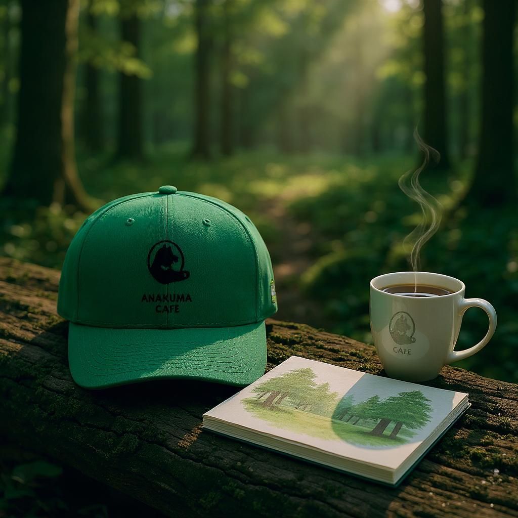 正面にはANAKUMA CAFEのロゴが刺繍されていて、